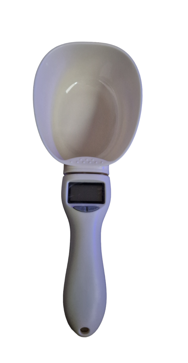 Mit dem digitalen Bildschirm kann das Futtergewicht genau abgemessen werden, um eine ausgewogene Ernährung sicherzustellen. Der Messlöffel hat Platz für eine Portion und ist für Hunde und Katzen geeignet.