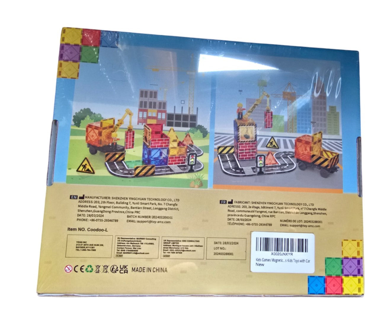 Kinderspiele Magnetische Bausteine Straßenset mit ausfahrbarem Magnetkran, Stadt