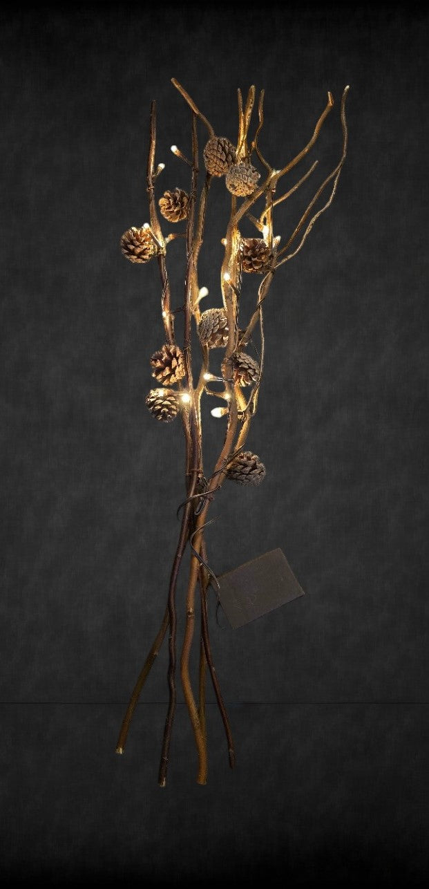 LED-Zweige "Zapfen" Dekoration aus echten Natur-Zapfen im 5er-Set, jeweils ca. 75 cm hoch.