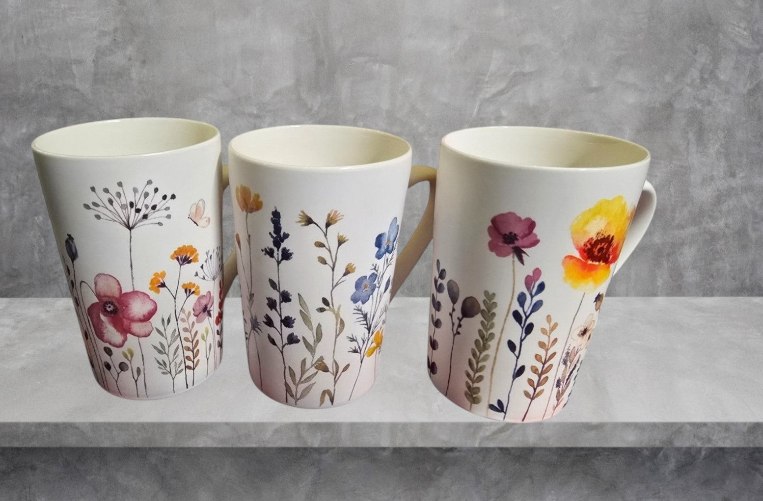 Die drei Becher aus Porzellan sind mit einem bezaubernden geblümten Muster verziert, das an ein blühendes Blütenmeer erinnert. Dank der Spülmaschinenfestigkeit sind sie sowohl für den täglichen Gebrauch als auch für besondere Anlässe bestens geeignet. Mit einem Fassungsvermögen von 385 ml sind sie ideal für heiße Getränke wie Kaffee oder Tee und schaffen eine einladende Atmosphäre für bis zu drei Personen.